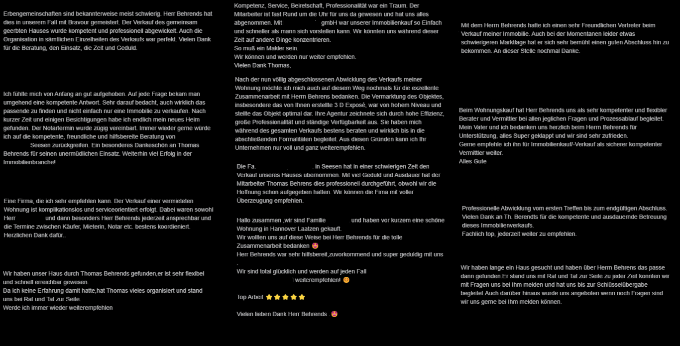 Bei Behrends Immobilien ist der Kunde nicht nur ein einfacher Kontakt – er steht im Mittelpunkt unseres gesamten Schaffens! Wir glauben fest an die Kraft einer persönlichen und maßgeschneiderten Beratung, die den Unterschied zwischen Erfolg und Misserfolg ausmachet. Unsere tiefgehende Analyse zeigt uns deutlich: Jeder Verkaufsprozess trägt eine einzigartige Geschichte, geprägt von unterschiedlichen Motivationen, Anforderungen und Emotionen. Diese Vielfalt verstehen wir und nutzen sie, um Ihnen die bestmöglichen Lösungen für Ihre speziellen Immobilienbedürfnisse zu bieten. Lassen Sie uns gemeinsam Ihre Träume verwirklichen und ergreifen Sie die Chance auf eine individuelle Beratung, die Ihre Erwartungen übertreffen wird!